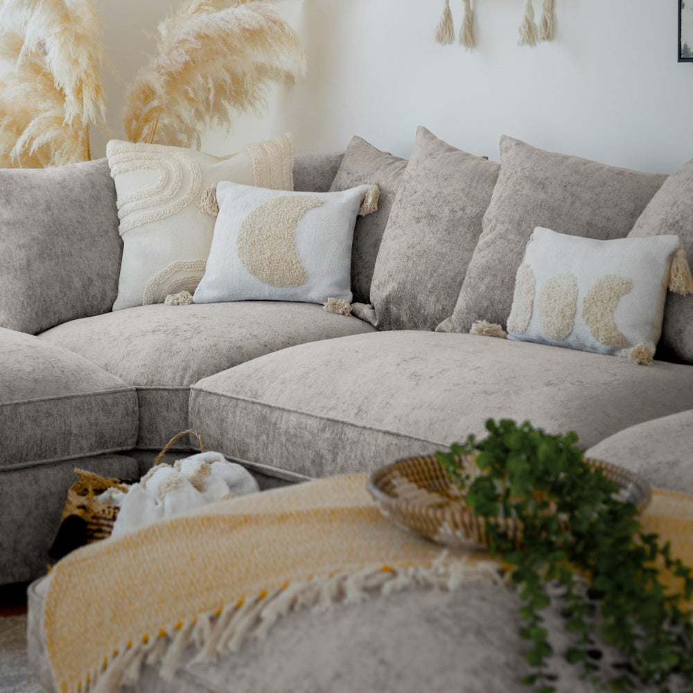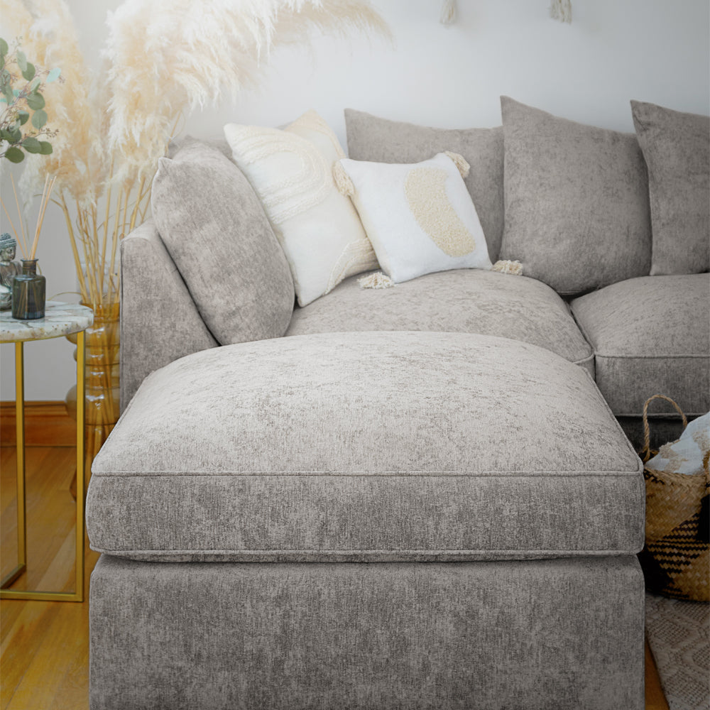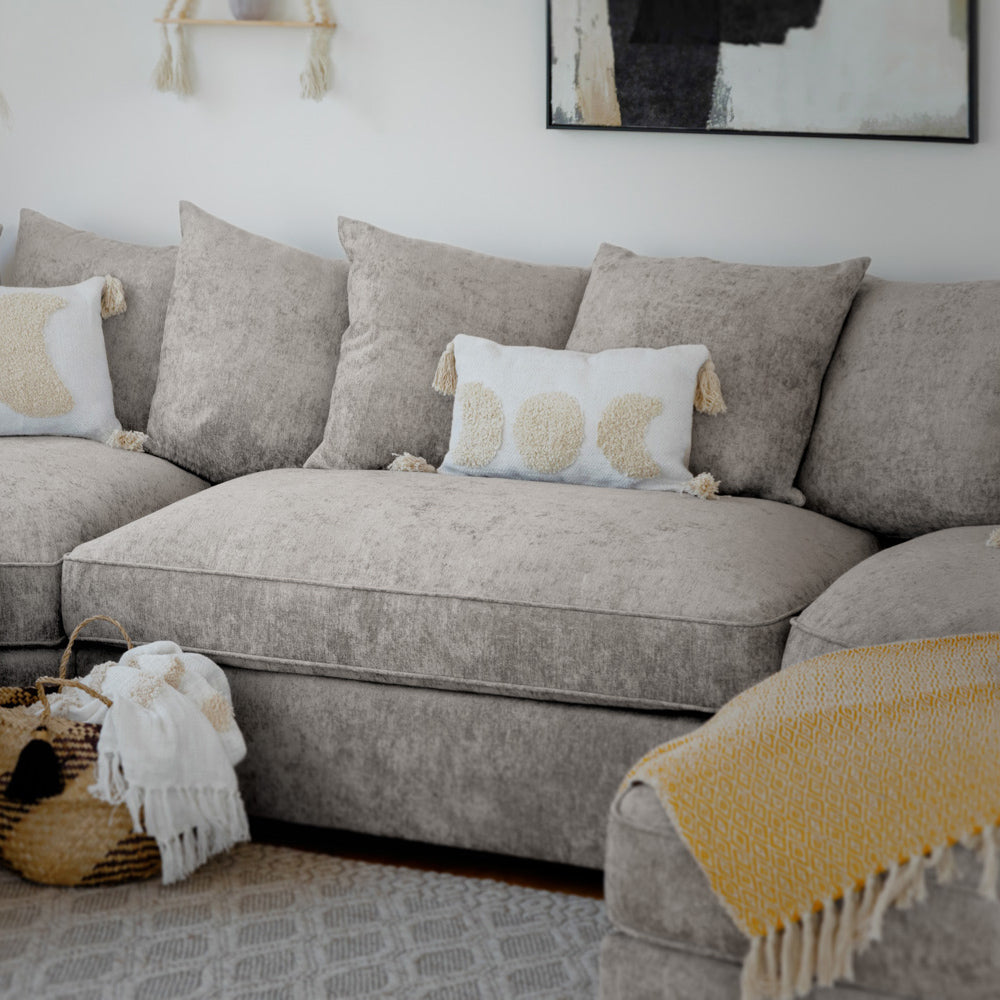 The Bishop is a stunning, large U-shape corner sofa that's sure to command any living space. With oodles of seating space this sofa is perfect for the whole family or for simply stretching out and getting comfy. This sofa features a stunning Chennile fabric that not only looks great but also endures wear more than most fabrics. With soft, deep-set cushions this sofa is as comfy as it is stylish!