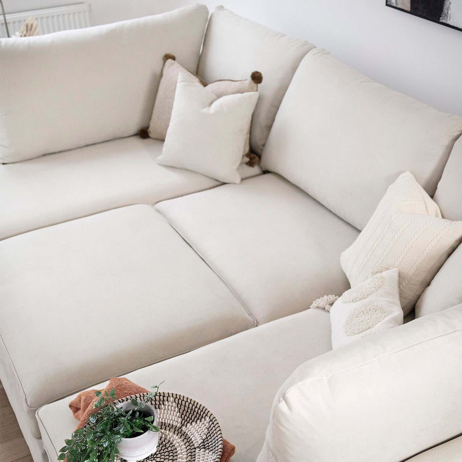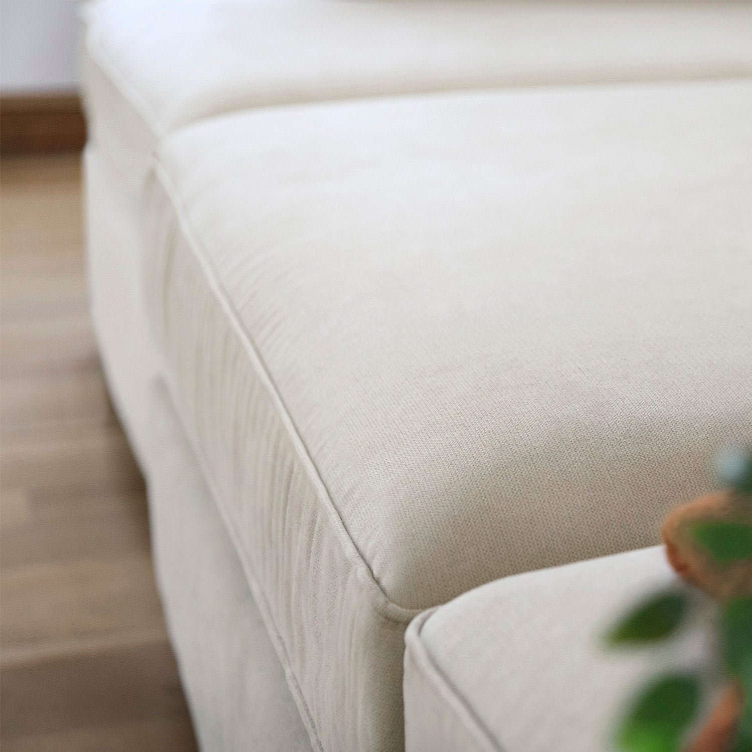 Craving a haven for good times, laughter, and epic movie nights? Look no further than the Carnaby in beige, this U-shaped sofa that wraps you in comfort and style. With its luxurious polyester fabric feels like a million hugs, inviting you to sink in and never leave. Plus, removable back cushions make cleaning a breeze. Make it the centrepiece of your happy moments and prepare for endless good times.